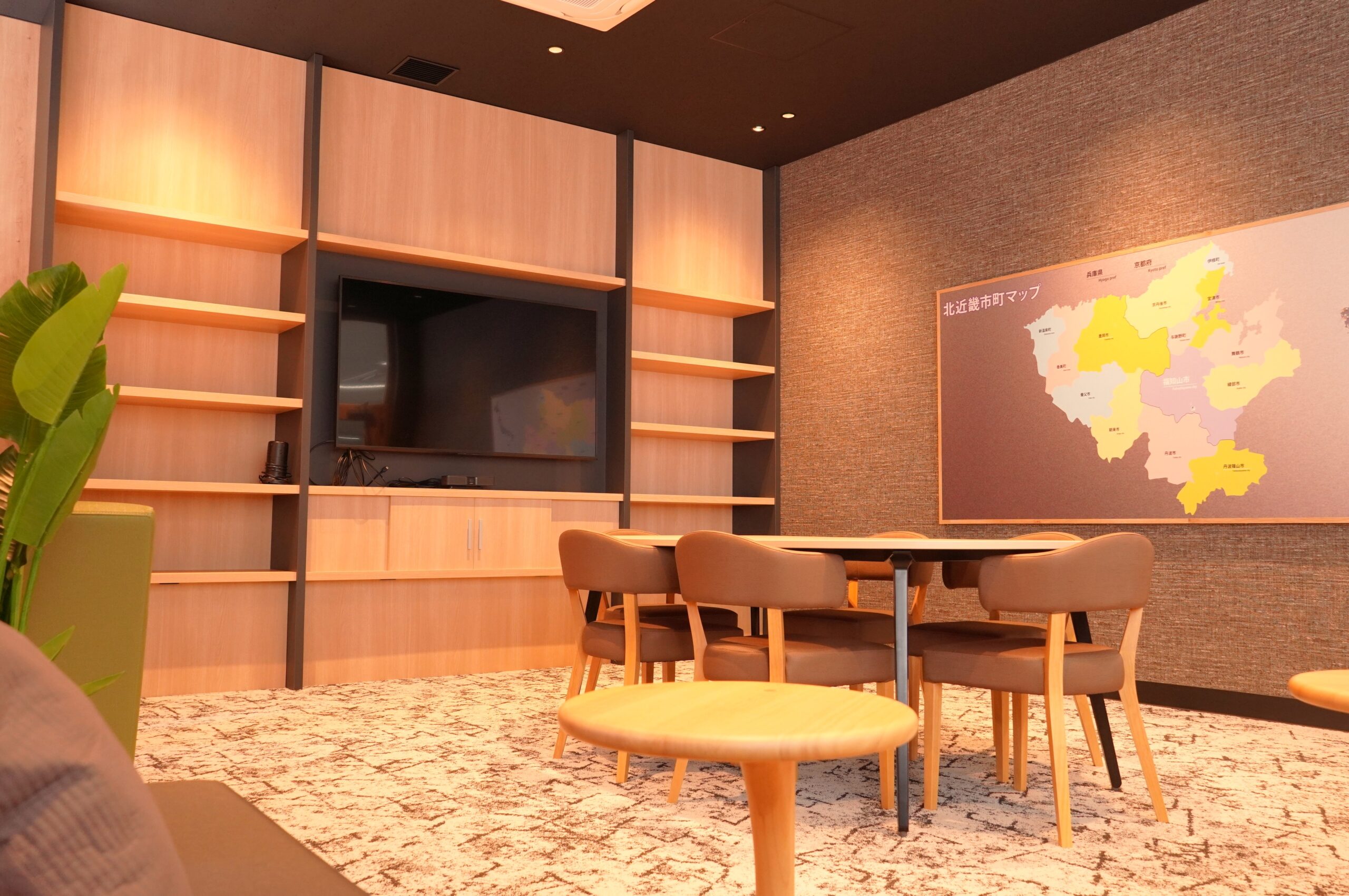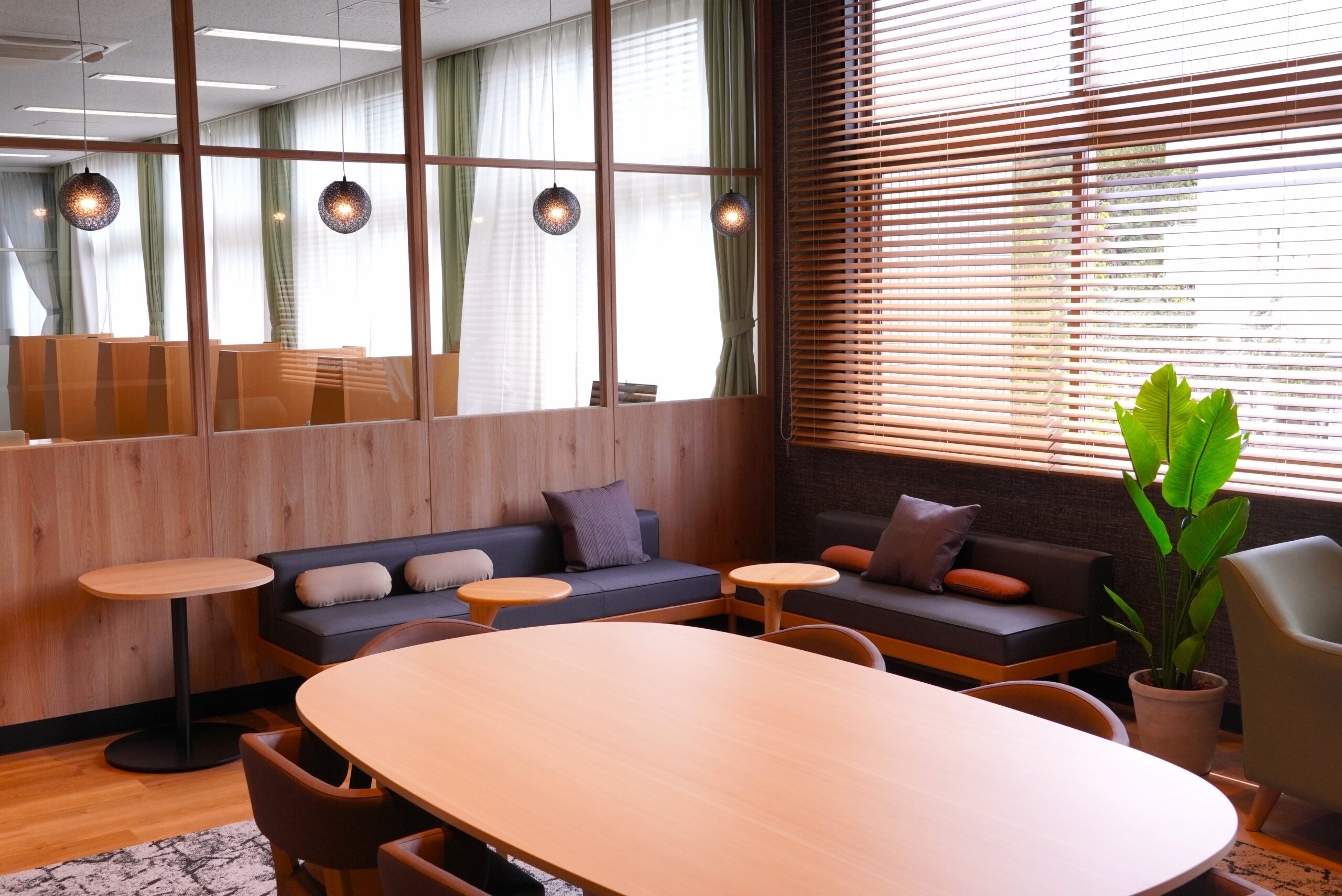 6人掛けのテーブルやソファ、ベンチを配置しており、ミーティング等にご利用いただけます。
