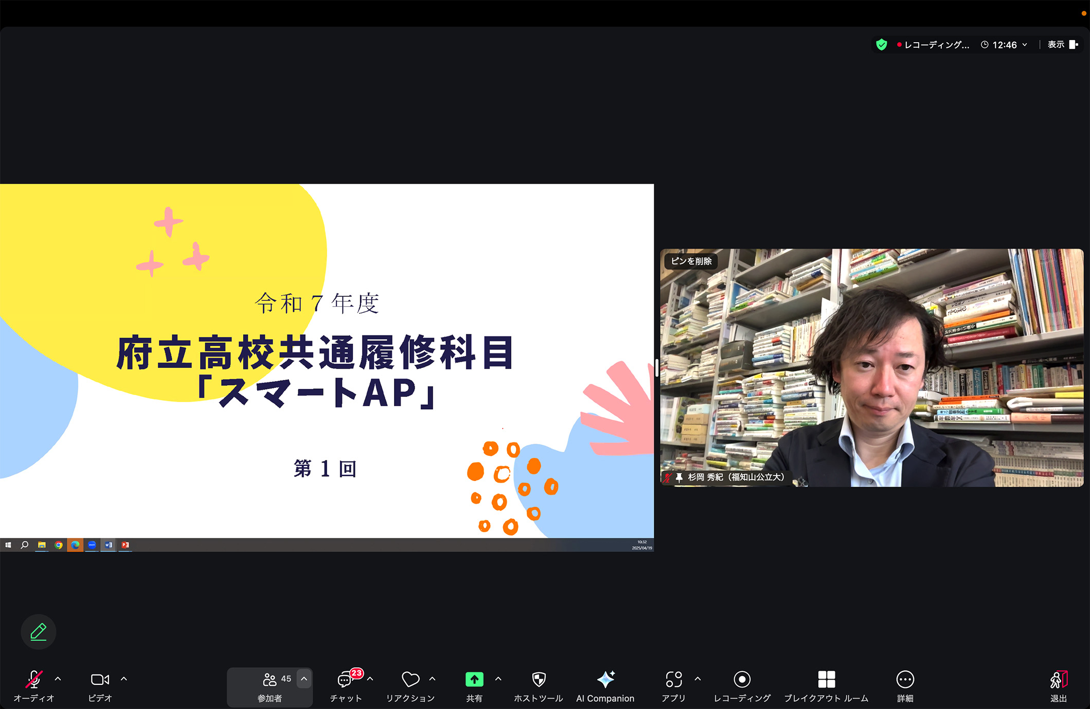 2025年4月19日(土)、京都府教育委員会主催で開催された府立高校共通履修科目「スマートAP」で地域経営学部・杉岡秀紀准教授が講師を務めました。