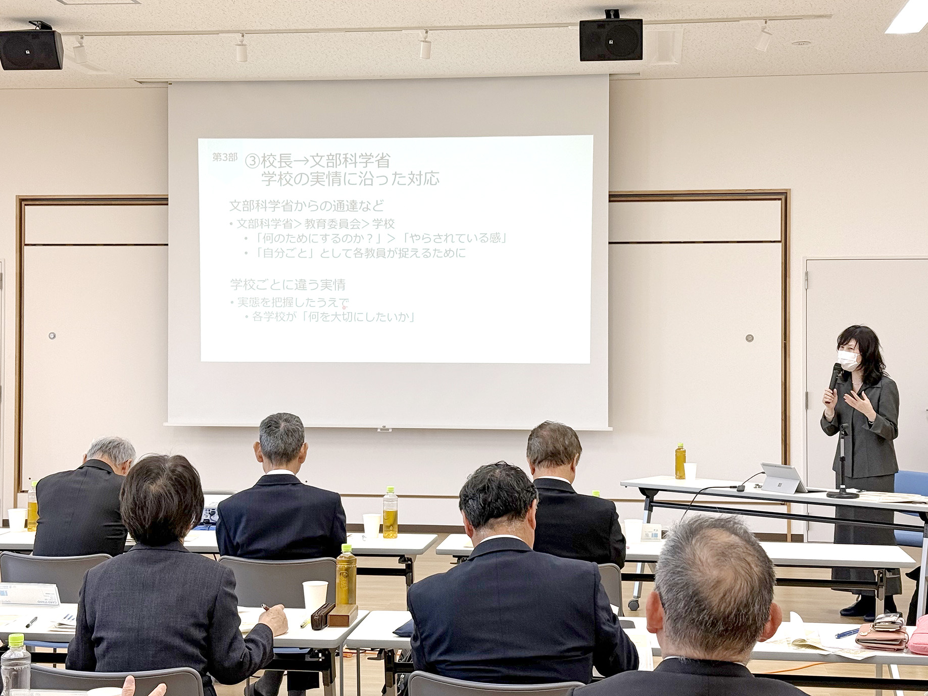 研修は二部構成で実施され、第1部では、帝京大学文学部心理学科の角南なおみ准教授より「義務教育における特別支援教育の現状と今後の課題」と題する講演が行われました。講演では、「義務教育における特別支援教育の現状」、「教育委員会として求められる取り組みと支援」、「特別支援教育におけるこれからの教育委員会のあり方」といった観点から、説明されました。