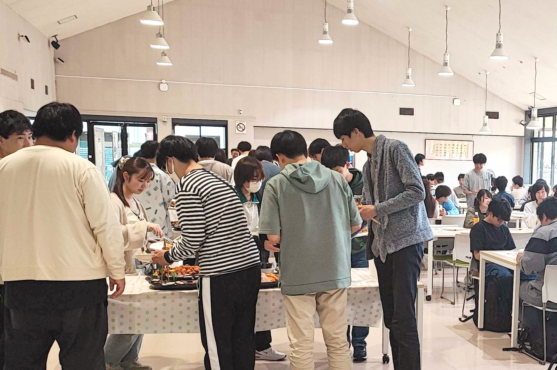 2025年5月14日(水)、情報学部の教員が主催する新入生懇親会が本学食堂「PILLAR Dining」で開催され、99名の1年生が参加しました。