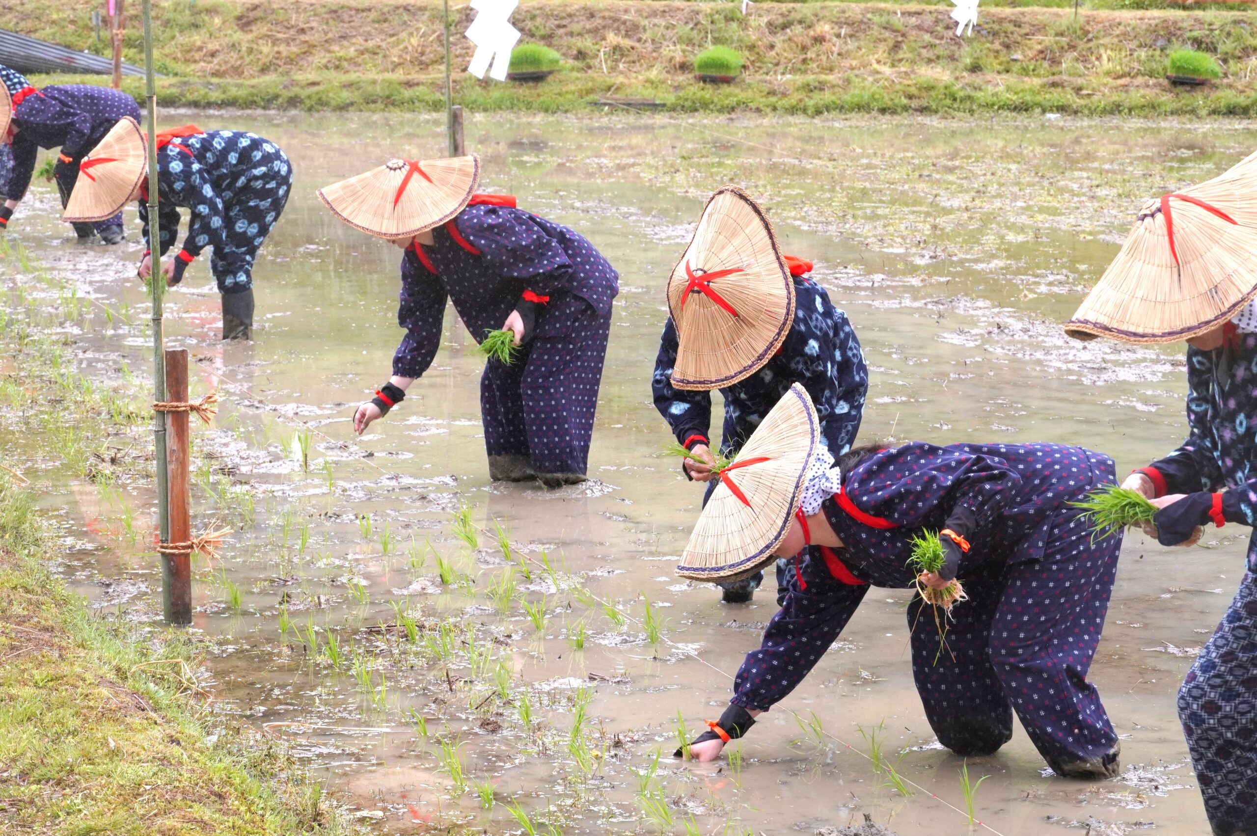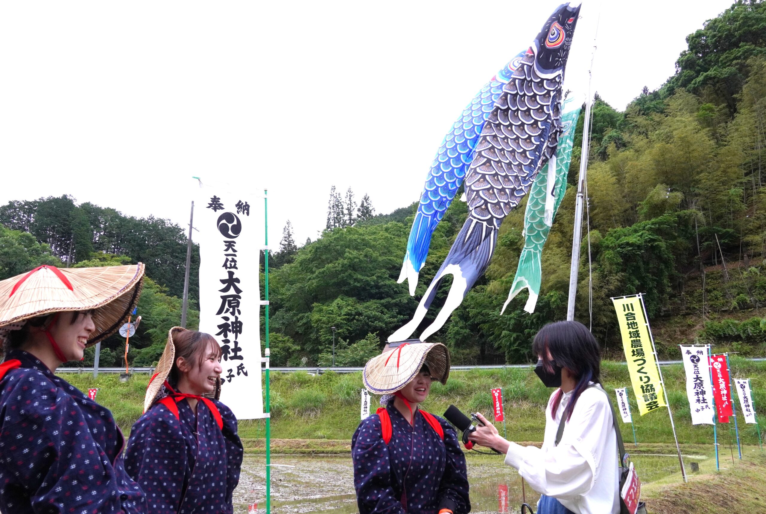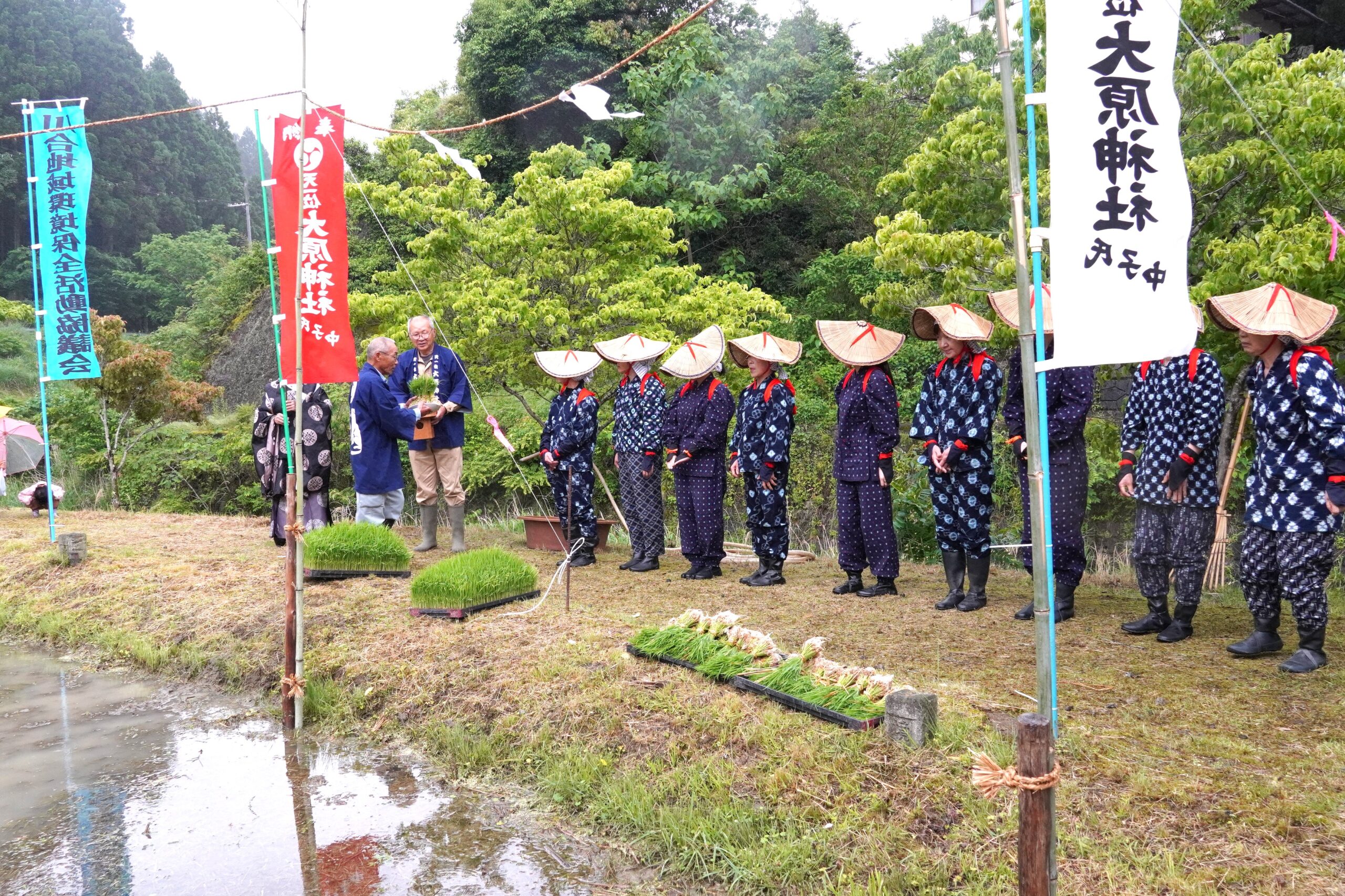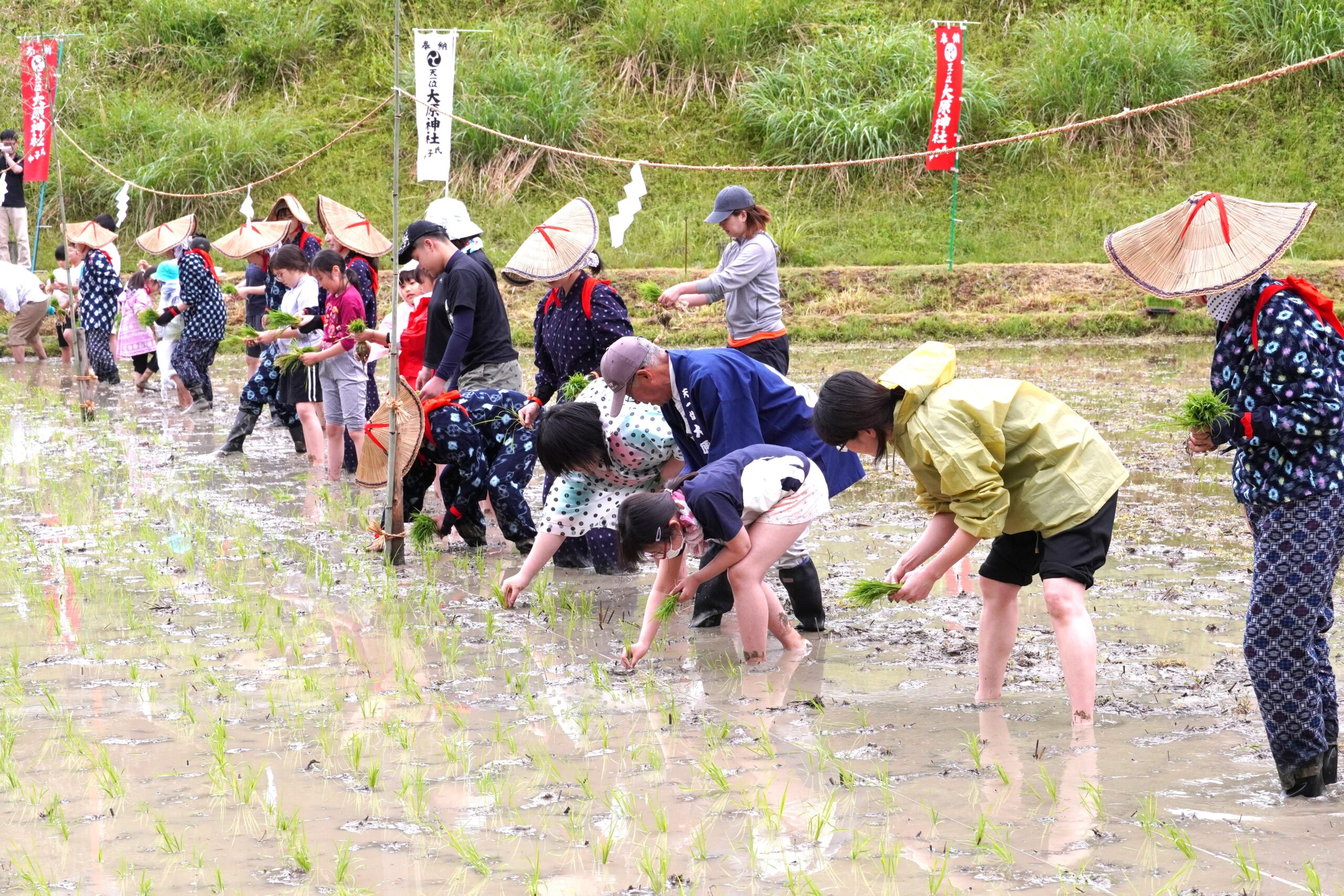 2025年5月25日(日)、福知山市三和町にある大原神社で「御田植祭」が開催され、本学学生、教員が参加しました。