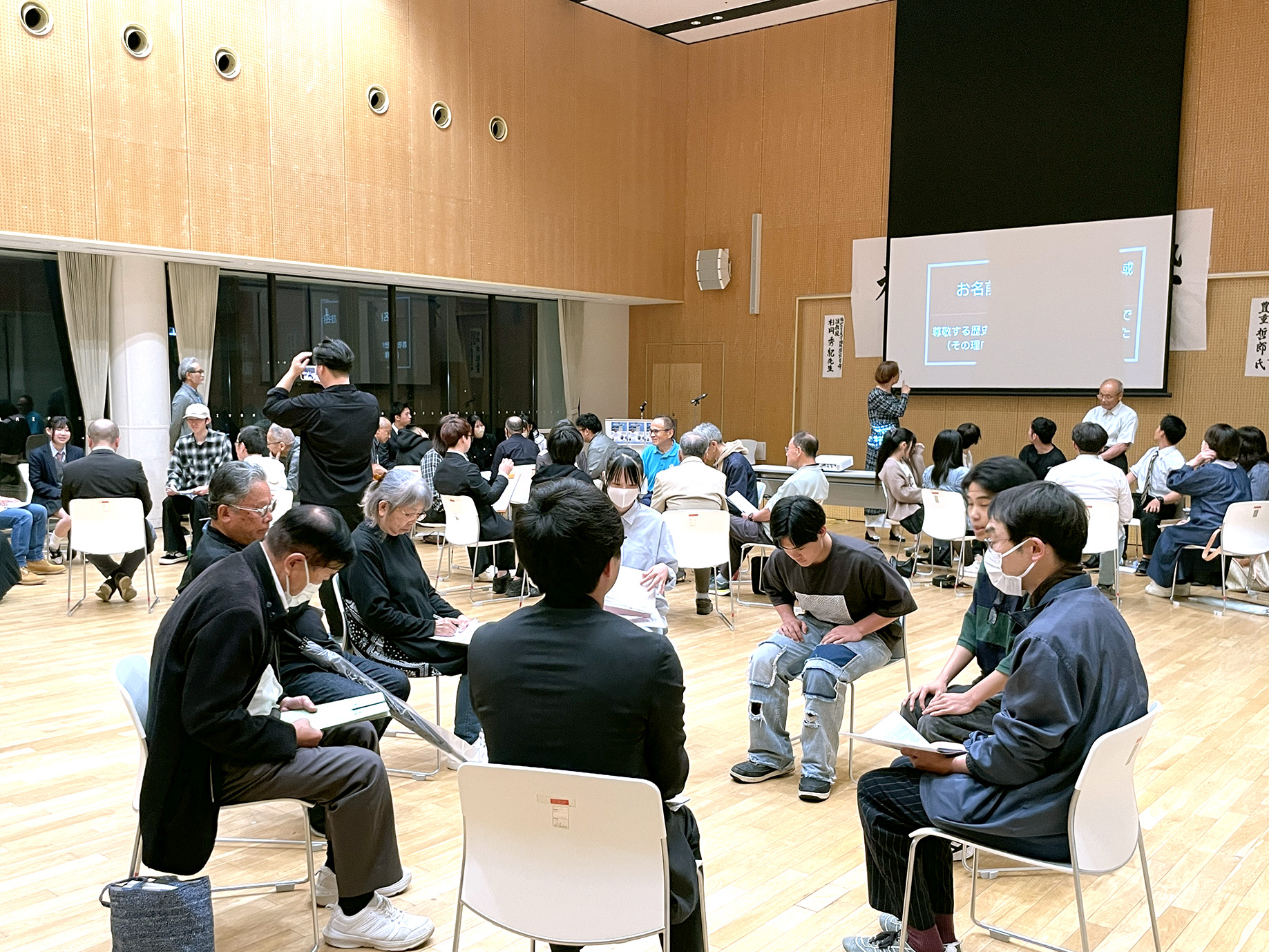 当日は40名を超える参加者が集まり、冒頭では福ま~る代表・西田好孝氏の挨拶に続き、同団体青年部の片岡虎志氏より活動報告が行われました。続いて、鹿児島県鹿屋市・柳谷自治公民館の豊重哲郎館長による講演が行われ、その後、杉岡准教授の進行のもと、参加者全員によるワークショップが実施されました。