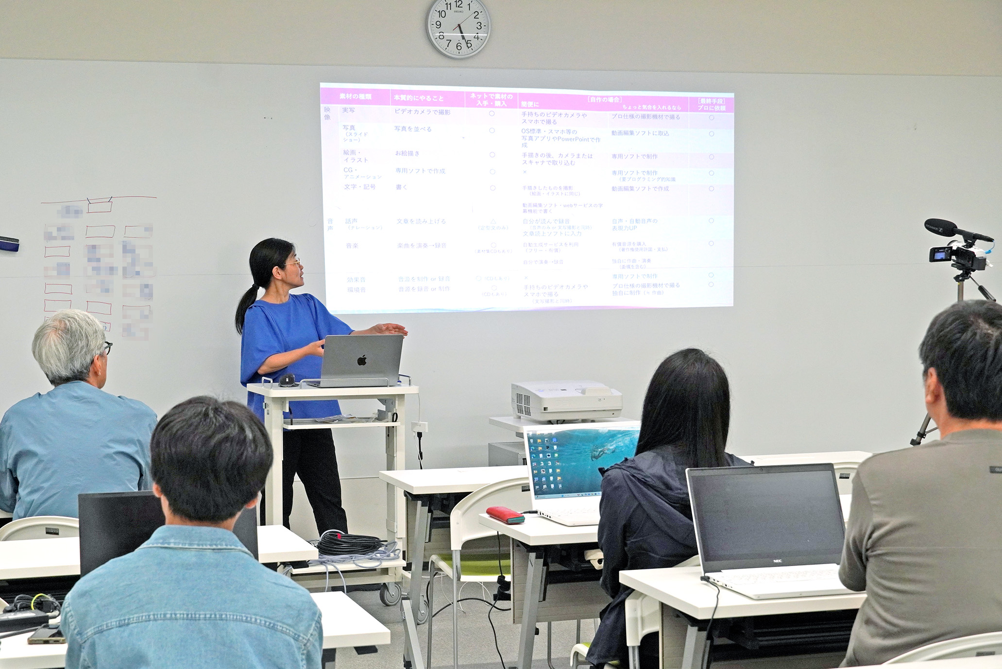 講座には、前回のPython講座を受講していて、今回は地域の村おこしなどで動画を活用できるようになりたいという方や、SNSを使った広報のスキルアップをめざす経営者など、様々な思いを持った参加者が集い、それぞれ自分のやりたいことに活用できるよう、熱心に講座を受講していました。