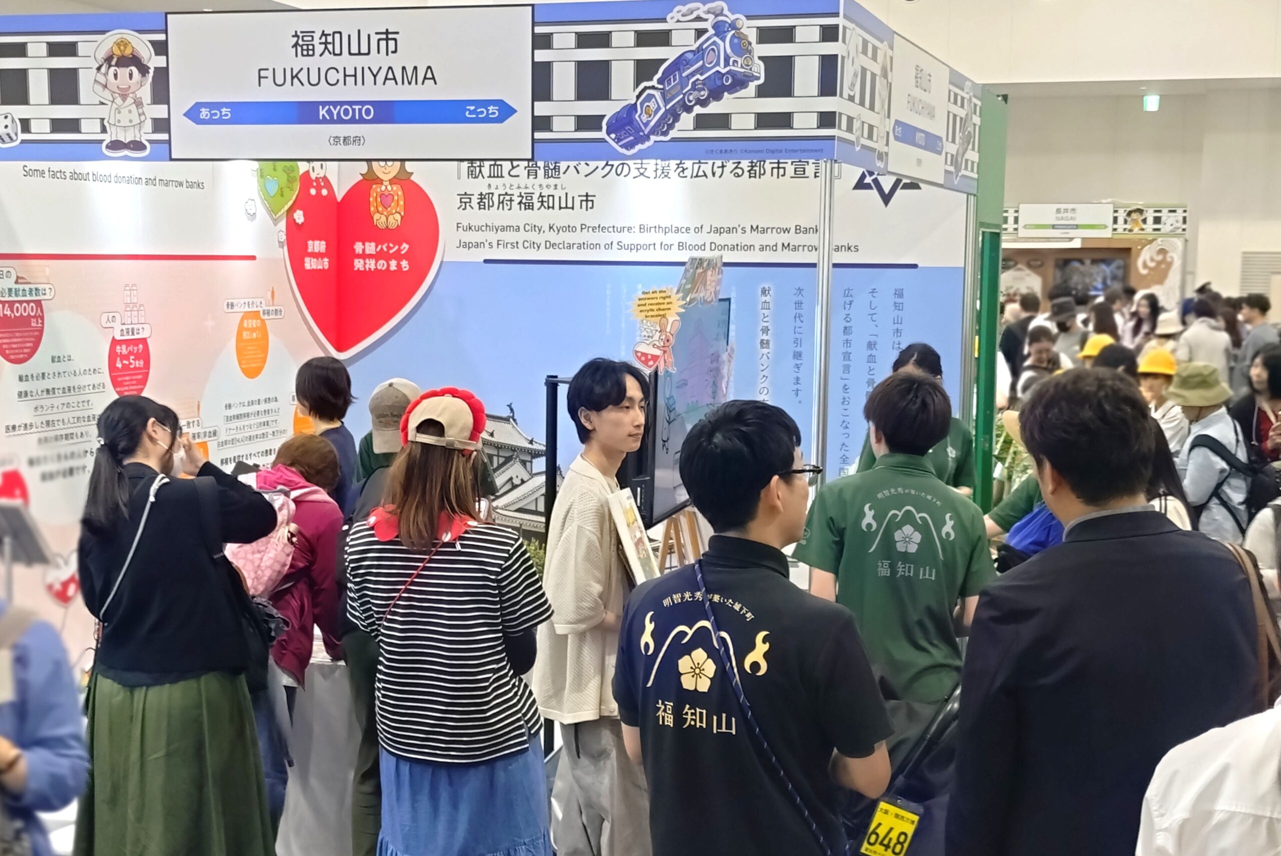 2025年5月28日から6月1日までの5日間、大阪・関西万博の夢洲会場で開催された「地方創生SDGsフェス」にて、福知山市が「献血と骨髄バンクの支援を広げる都市宣言」を掲げる自治体として、都市宣言についてパネル展示、献血、骨髄バンククイズなどを展示しました。