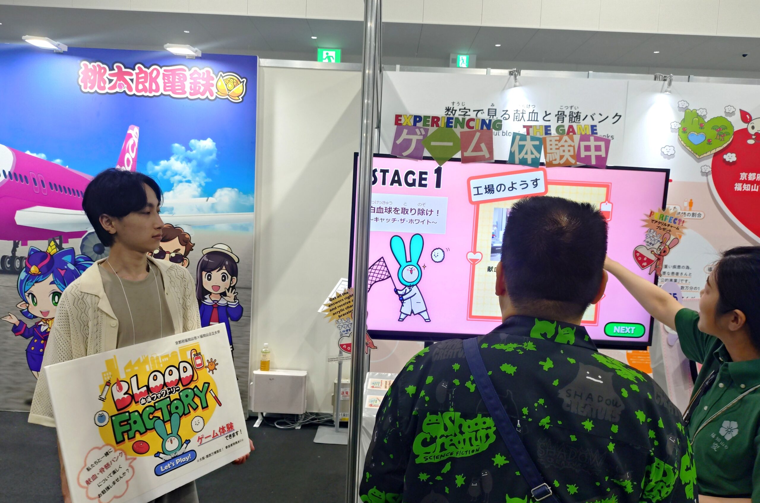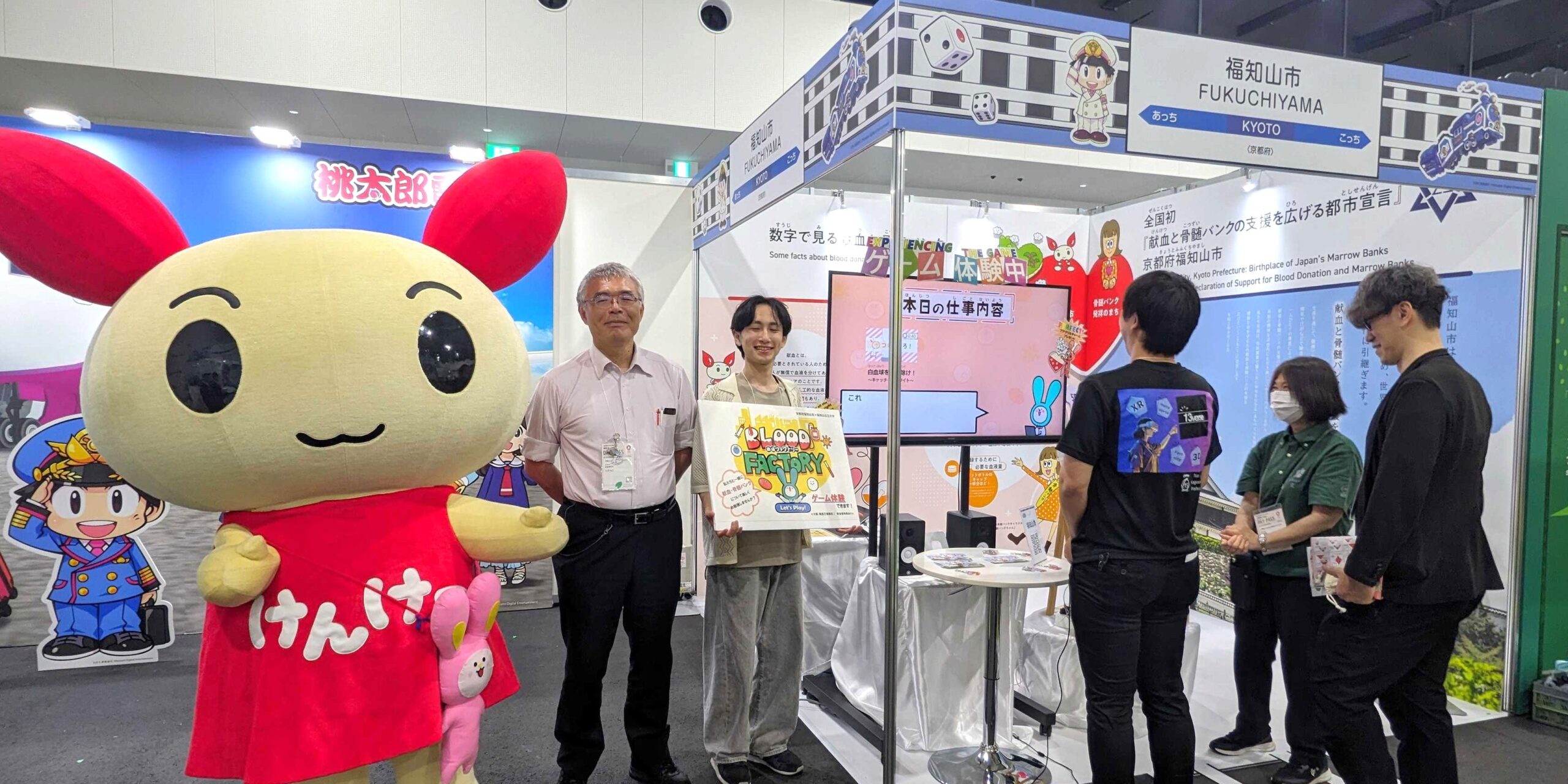 その展示の中で、福知山市と福知山公立大学情報学部が共同開発した体験型ゲームブースが設置されました。