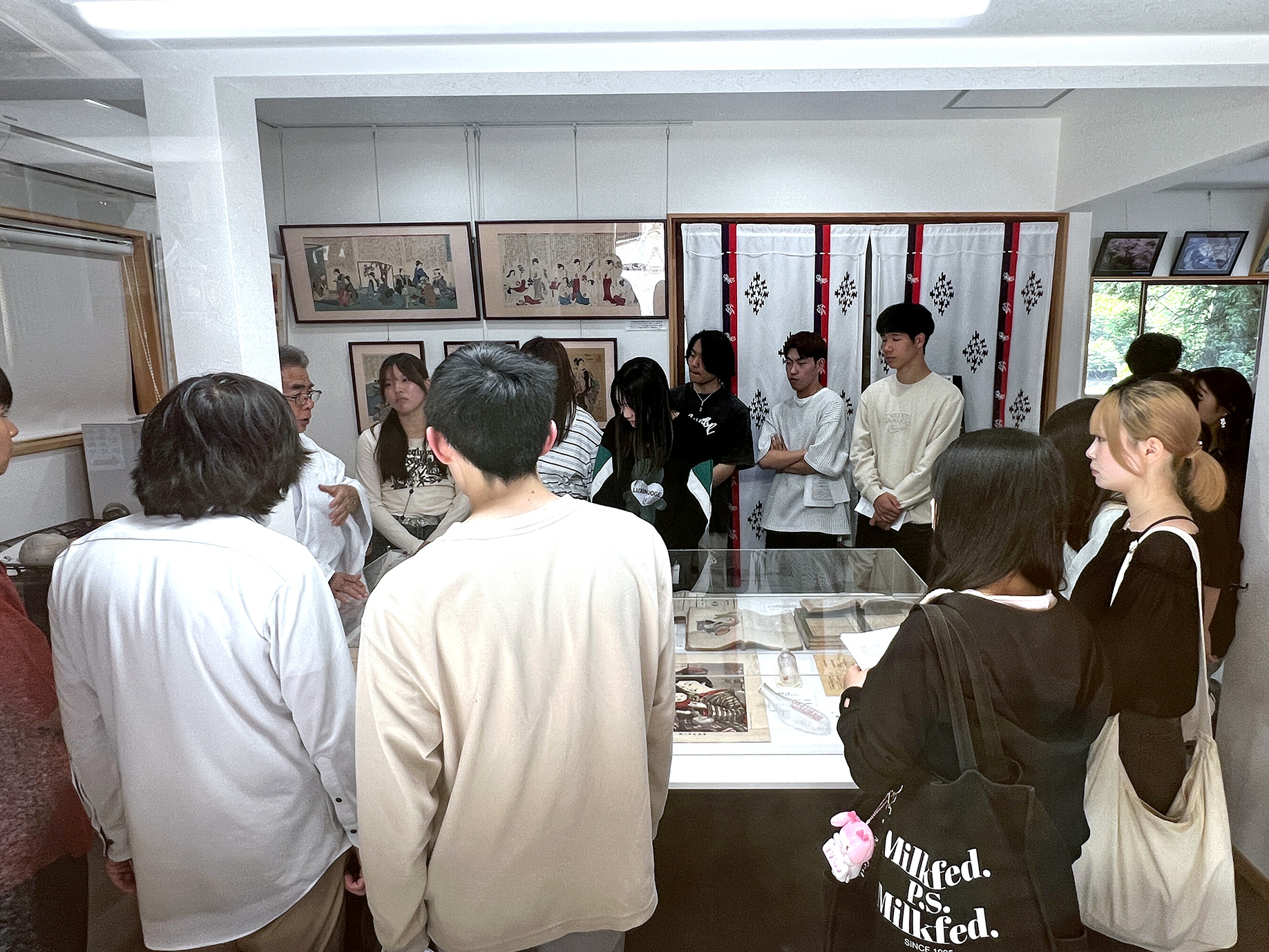 大原神社は、古くから安産・子授けの神として信仰されてきた歴史ある神社で、「うぶやの里」の名の通り、出産・産育に関する民俗文化が色濃く残る地域資源です。当日は、林宮司より神社の由緒や歴史的背景の説明を受け、境内の重要文化財や建築物を見学しました。また、本殿に併設された近代日本の出産資料館では、神社が地域文化の記憶と伝承の場であることを実感しました。さらに、京都府指定有形民俗文化財「産屋」の紹介を通じて、かつての出産風習や家族・地域との関わり方など、日本の産育文化の多様性とその価値について学ぶことができました。