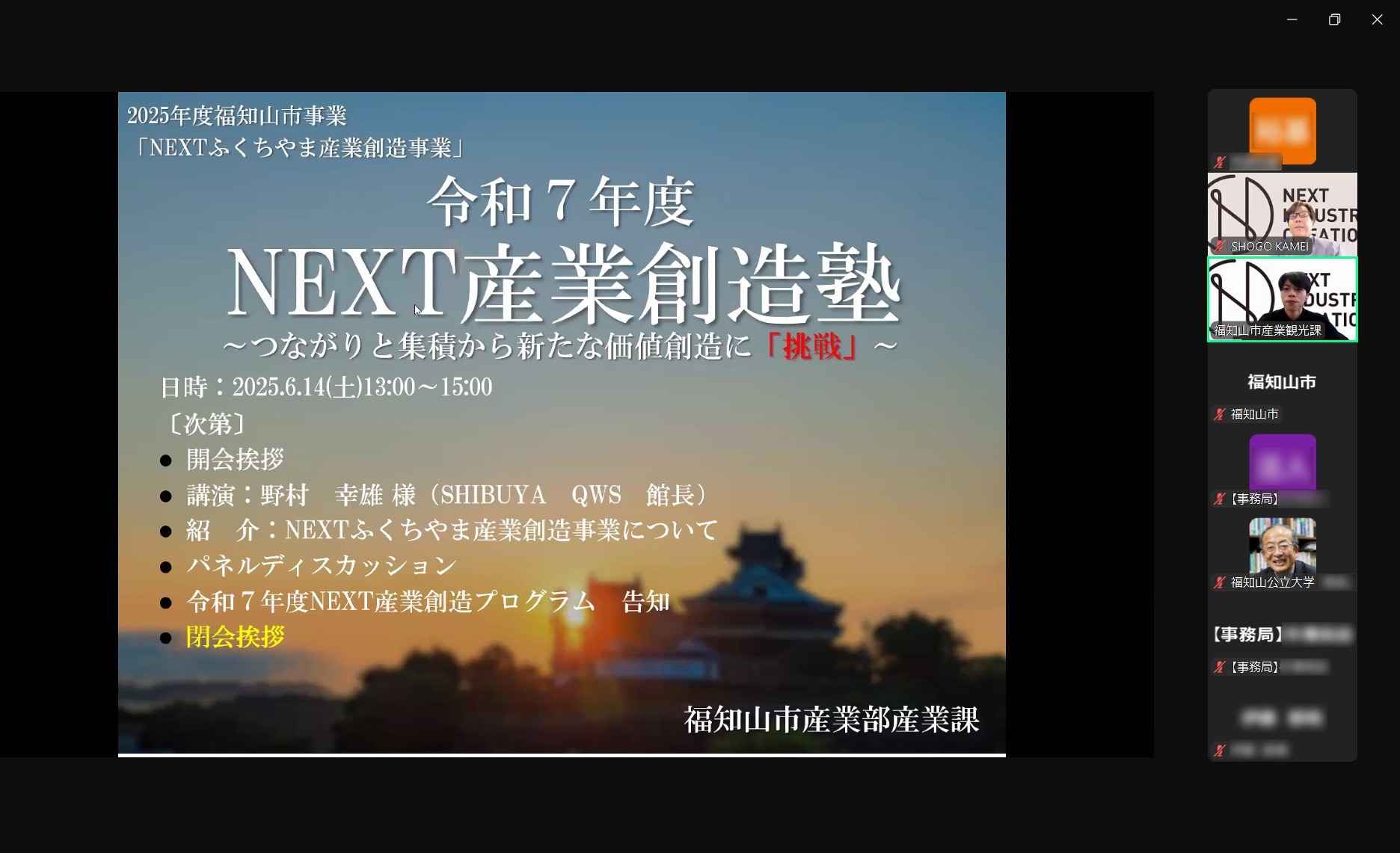 本学が福知山市より委託されている「NEXT産業創造プログラム」の導入的な位置づけとなる「NEXT福知山産業創造塾」が2025年6月14日(土)、福知山市主催で開催されました。