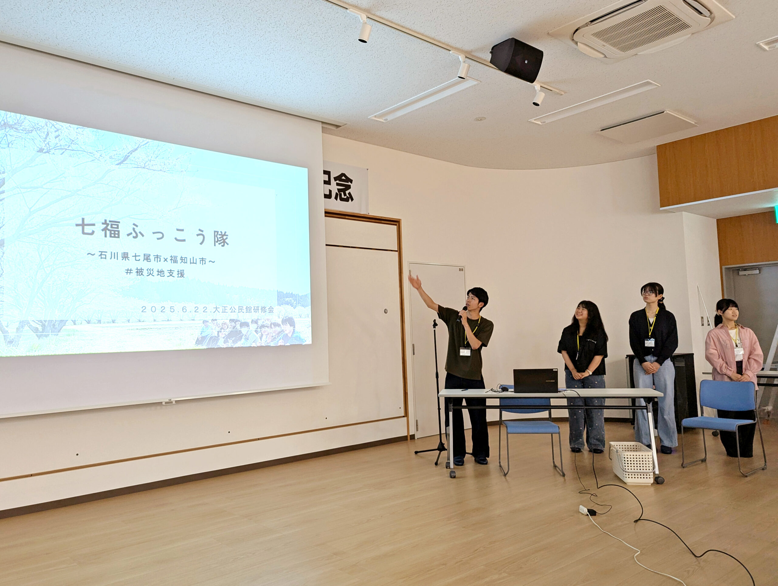 2025年6月22日(日)、創立50周年を迎える大正地区公民館の記念研修会「公民館とまちづくり―公立大生の活動から見えること」が桃映地域公民館(福知山市)で開催され、本学から4組の学生団体が登壇しました。
