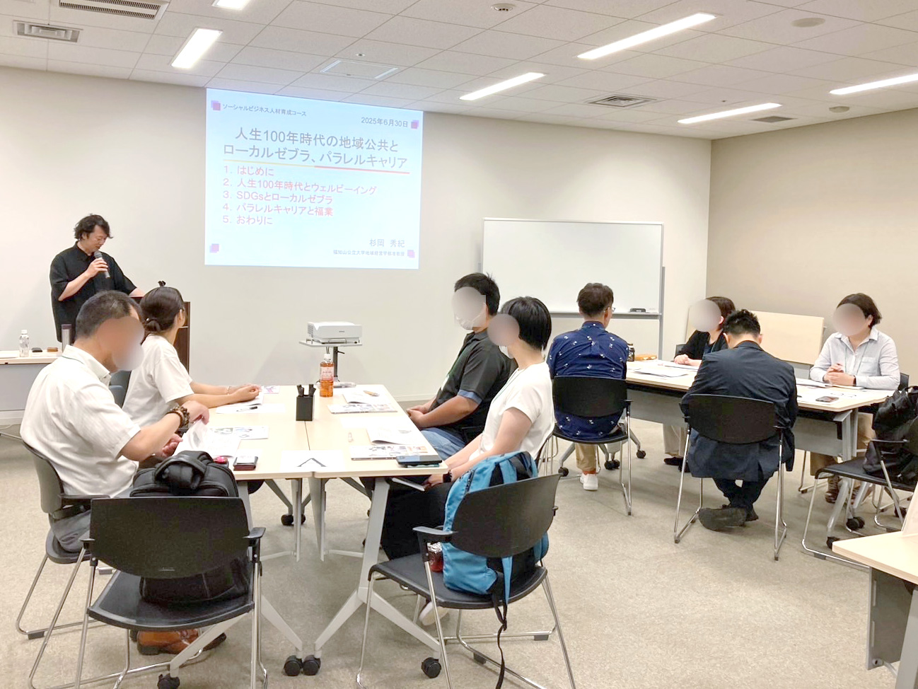 2025年6月30日(月)、京都府生涯現役クリエイティブセンターリカレント研修「ソーシャルビジネス人材育成コース」が京都経済センター(京都市)で実施され、地域経営学部の杉岡秀紀准教授が講師を務めました。