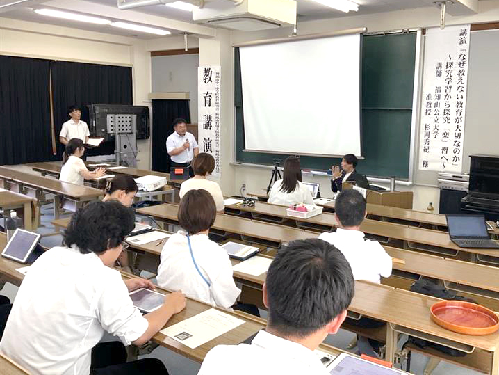 この講演会は、舞鶴市内の市立学校の全教員を対象に毎年開催される研修で、今年度は杉岡准教授が講師を務めました。