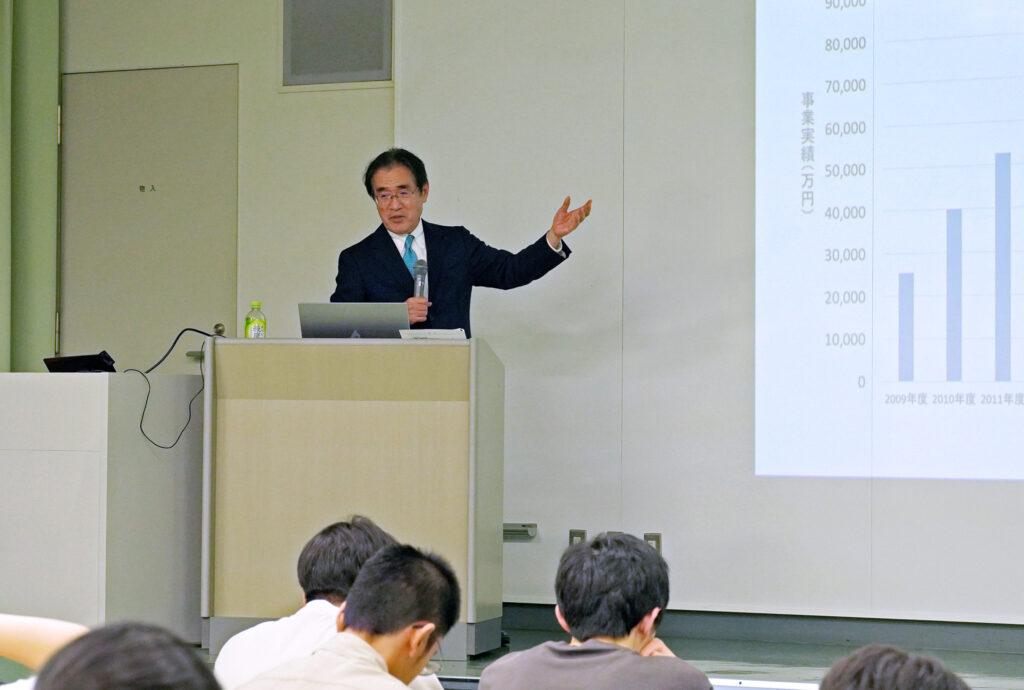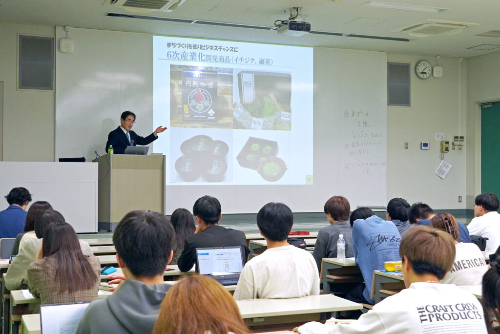 地域経営学部の専門科目「地域経営学特別講義Ⅰ(北近畿の地域創生Ⅰ)」※上回生は「グローカル特講Ⅱ」(担当:杉岡秀紀准教授)では、北近畿地域内で活躍されるキーパーソンをゲストスピーカーに迎え、それぞれの立場から地域創生の取り組みについてご講話いただいています。