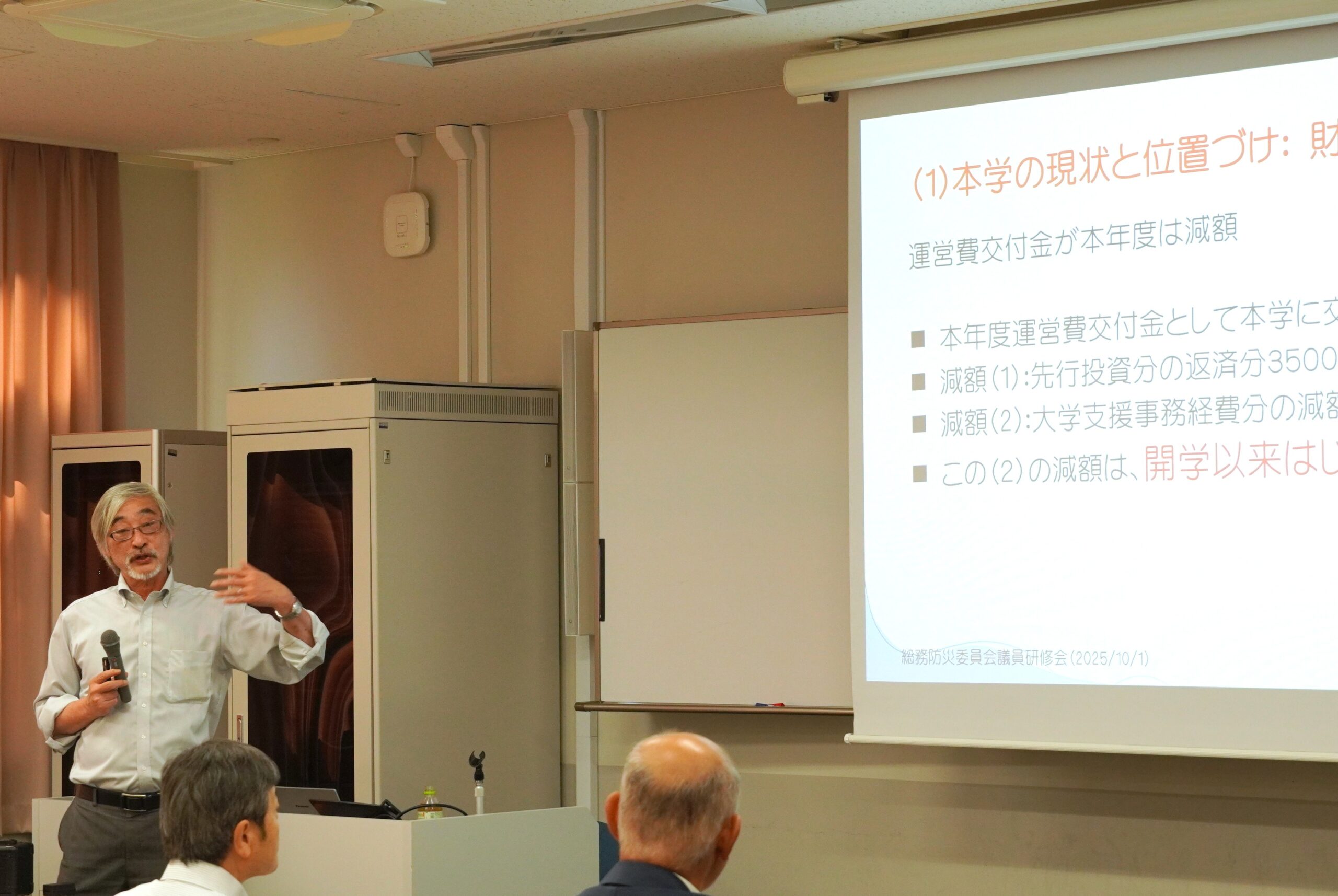 2025年10月1日(水)、本学と福知山市議会との連携事業の一環として、 総務防災委員会議員研修会が本学で実施されました。