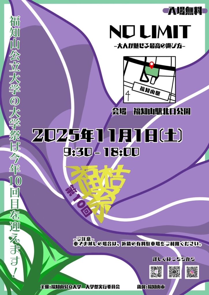 2025年11月1日(土)、福知山公立大学大学祭実行委員会主催による第10回福知山公立大学大学祭「福桔祭」を福知山駅北口公園で開催します。