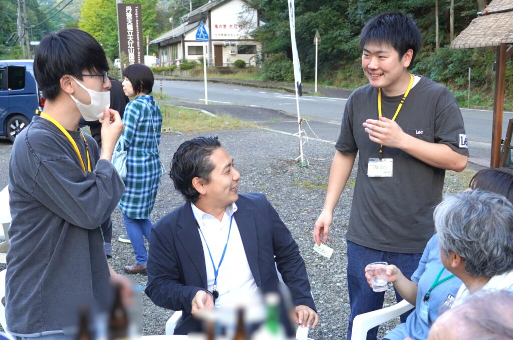 このイベントは、大学と地域住民との交流を深めることを目的として実施されたもので、参加者が手書きの名刺を作成し自己紹介をして交換するなど積極的な交流ができる場となりました。食事を囲みながら、学生は地域の歴史や現状について直接話を聞き、地域の方々は若者の視点や大学の取り組みに触れることで、互いの理解を深める貴重な機会となりました。