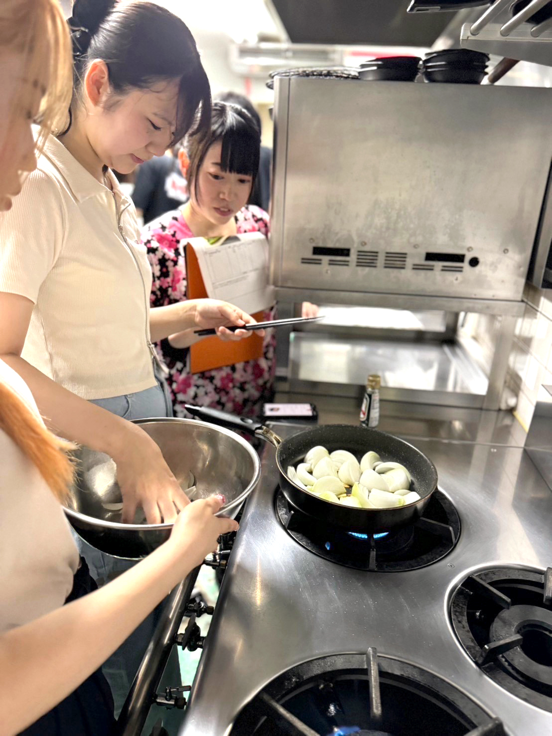 試作会では、全店舗の店長・副店長・エリアマネージャーにも参加いただき、プロの視点からアドバイスを受けました。学生らしいアイデアを大切にしつつ、実際の店舗運営に必要な運営コスト(原材料費以外の費用)や価格設定、提供オペレーションについても、活発に意見交換を行いました。