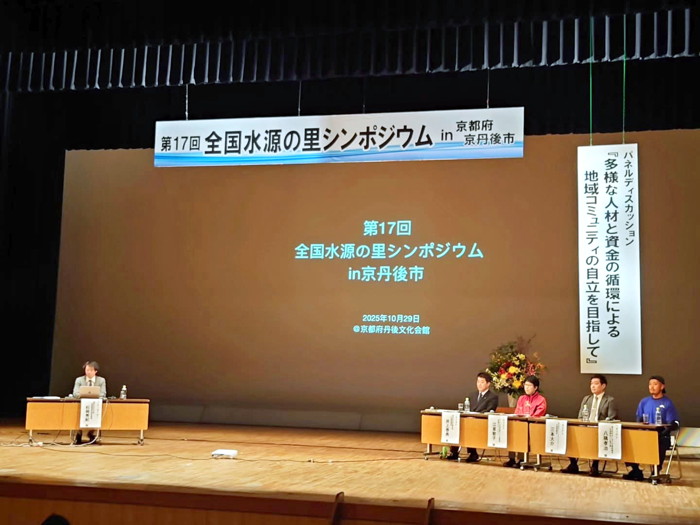 2025年10月29日(水)・30日(木)の両日、京都府丹後文化会館(京丹後市)において「第17回全国水源の里シンポジウムin京都府京丹後」が開催され、29日のパネルディスカッションに地域経営学部の杉岡秀紀准教授が登壇しました。このシンポジウムは、全国142自治体が加盟する全国水源の里連絡協議会が、「上流は下流を思い、下流は上流に感謝する」という理念のもと毎年開催しているもので、本年は京丹後市で開催され、約300人が聴講しました。