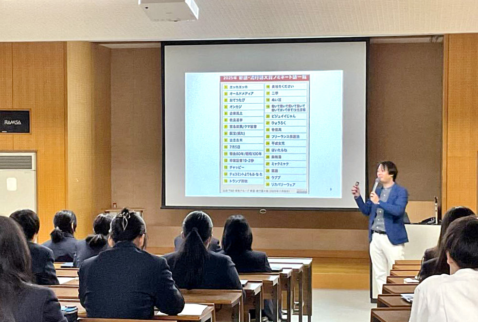 2025年11月21日(金)、京都府立大江高等学校地域創生科1年生(45名)を対象とした進路講演会が実施され、本学地域経営学部の杉岡秀紀准教授が講師として登壇しました。本講演会は2020年度から毎年1回実施されており、今年度で6回目となります。