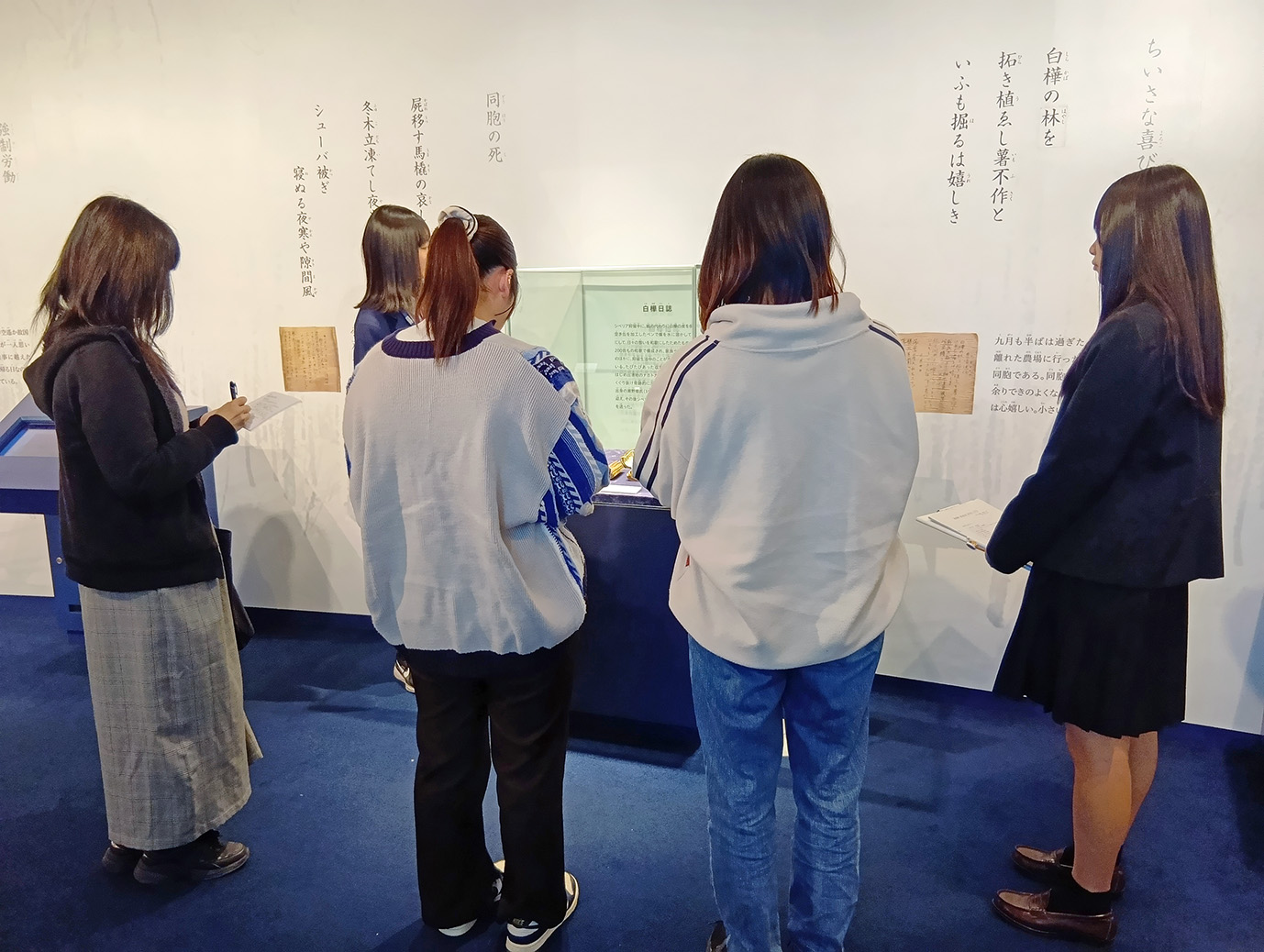 大谷ゼミでは2019年以降、毎年「舞鶴引揚記念館」を訪問していますが、今回は初めて「学生語り部」の皆さんからご説明をいただきました。館内資料の見学に加え、中学生・高校生の語り部の皆さんからシベリアに抑留された方々の現地での暮らしや引揚者を迎えた舞鶴の様子等についての詳細、セミナールームでは副館長より旧満州や引揚の歴史、舞鶴港が果たした役割についてご説明いただきました。現地訪問により、学内でのゼミ発表の際には漠然としたイメージしか持てなかった「引揚」について、より具体的に理解することができました。