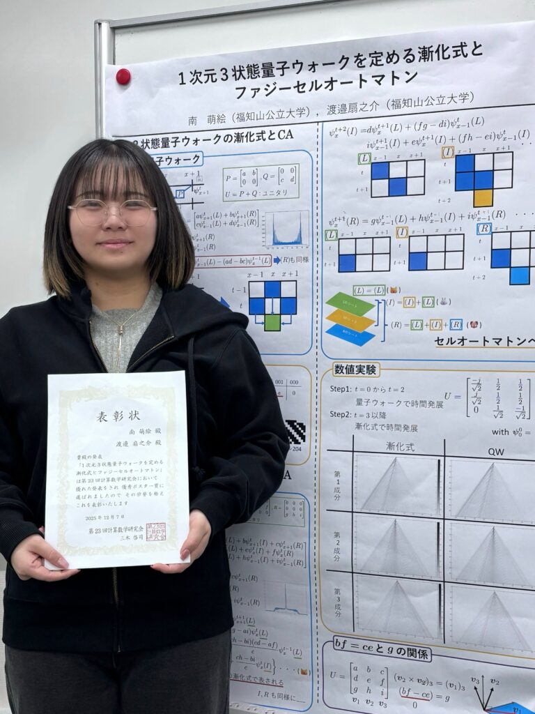 2025年12月5日(金)~7日(日)に開催された『第23回 計算数学研究会』において、本学の大学院生および学部生がそれぞれ優秀な成果を発表し、最優秀講演賞および優秀ポスター賞を受賞しました。