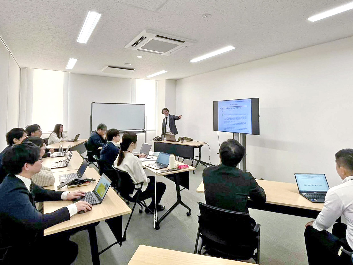 本プロジェクトでは全5回の講座が企画されており、杉岡准教授は3年前から「政策づくりのポイント」や「プレゼンの技法」などの講師を務めています。この日は、「プレゼンの技法」をテーマに受講者へ話題提供を行ったほか、3チームによる中間発表を聴講し、フィードバックを行いました。今後は、12月末に理事者向け最終プレゼンテーションが実施される予定です。