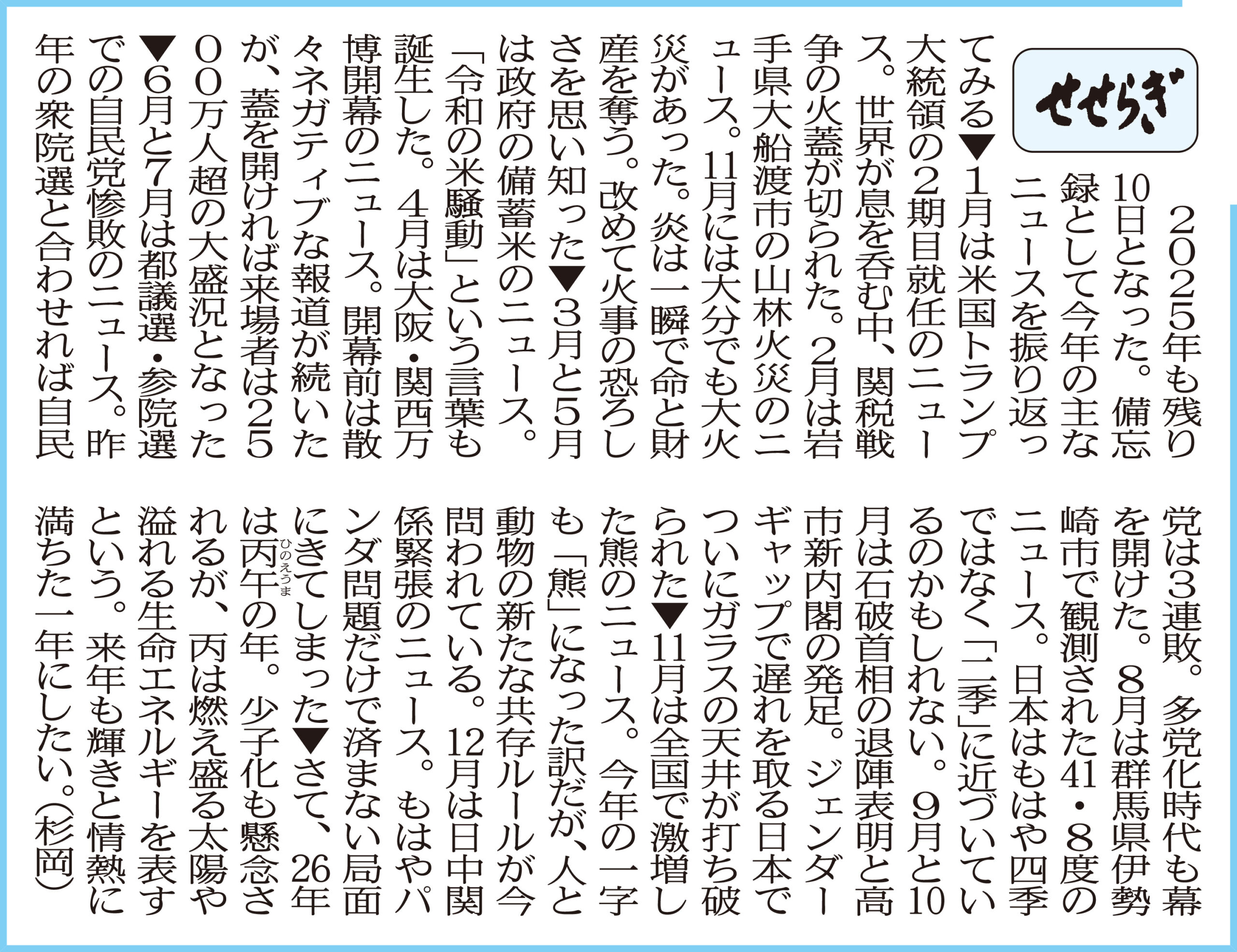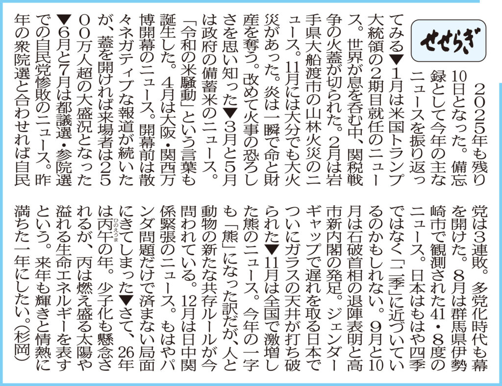 北近畿経済新聞「せせらぎ」に杉岡准教授が寄稿しました レポート 2025.12.21 北近畿経済新聞「せせらぎ」(2025年12月21日付け)に杉岡秀紀准教授(地域経営学部)が寄稿しました。 (北近畿経済新聞社提供) 前回の記事はこちら ツイート