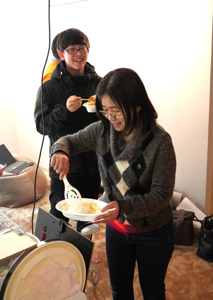 両日とも、学生が調理した食事を参加者とともに味わう企画を実施し、20日は豚汁、26日はカレーライスが提供されました。
