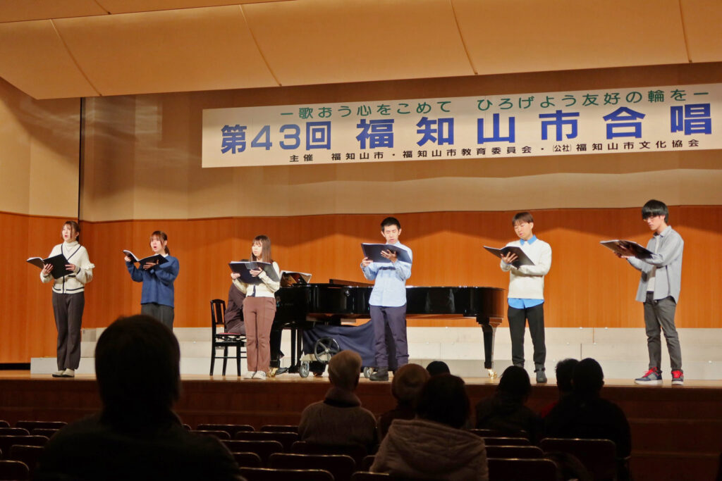 2026年1月25日(日)、雪の降り続く中、本学のアカペラサークル「かんた~れ。」が福知山市厚生会館で開催された「第43回福知山市合唱祭」に出演しました。第43回を迎える福知山市合唱祭は、福知山市・福知山市教育委員会・公益社団法人福知山市文化協会の主催で開催され、福知山市内のコーラス団体32組がそれぞれの歌声を披露しました。