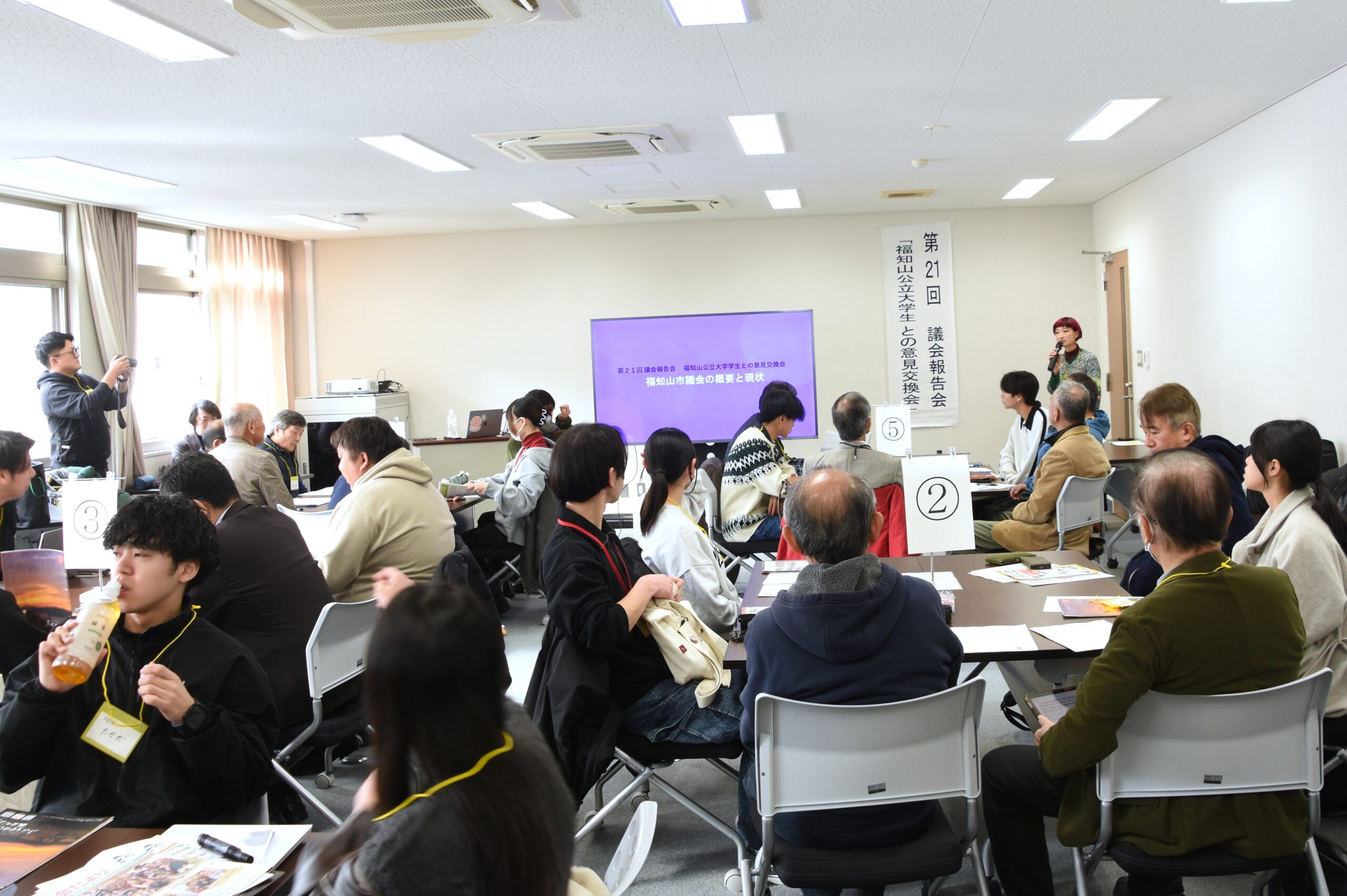 2026年2月10日(火)、福知山市議会が主催する「第21回議会報告会」の一環として、福知山公立大学において、学生との意見交換会が開催されました。