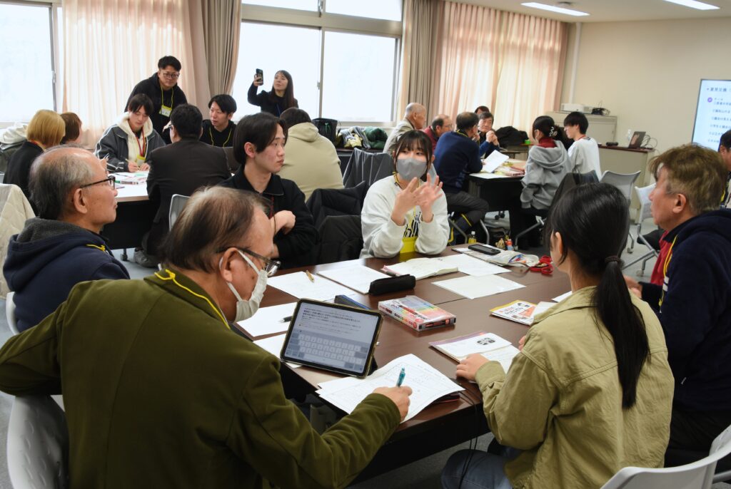 本意見交換会は、議会活動に関する情報を積極的に発信するとともに、市民の声を今後の議会活動や市政運営に反映させることを目的として実施されたものです。当日は、市議会議員20名、地域経営学部・杉岡秀紀准教授のゼミ生9名の「ギカモニさん(議会モニター)」および1年生3名が参加し、若い世代の視点を交えた活発な意見交換が行われました。