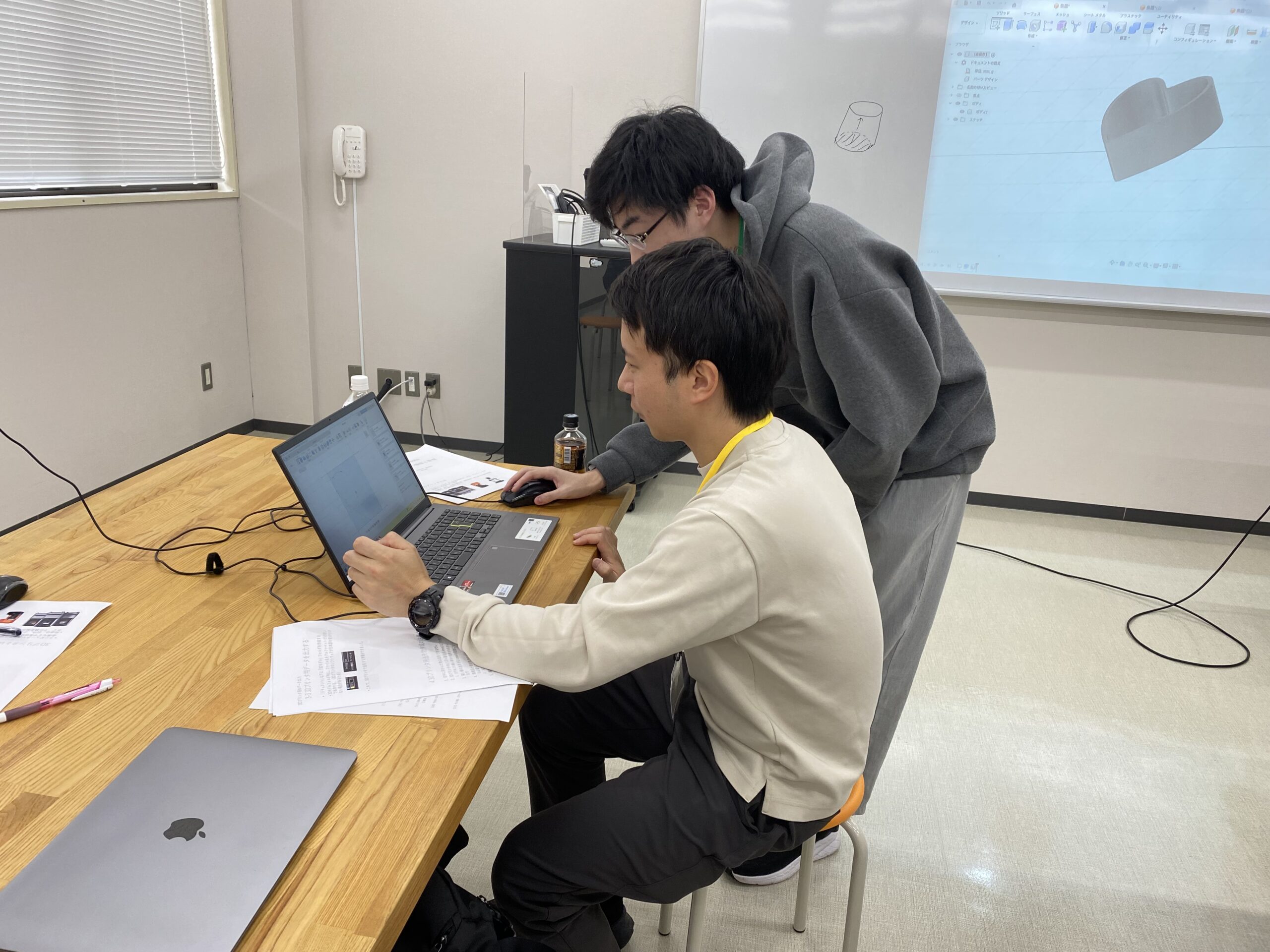 本講座は、情報学部の衣川昌宏准教授が講師を務め、地域の皆さまにデジタルものづくりの基礎と魅力を体験していただくことを目的として実施したものです。学生スタッフもサポートに加わり、昨年度に引き続き開催しました。参加者は、3Dプリンタの仕組みや主な方式、活用事例について理解を深めた後、専用ソフト「Fusion 360」を用いて3Dモデルの作成に取り組みました。