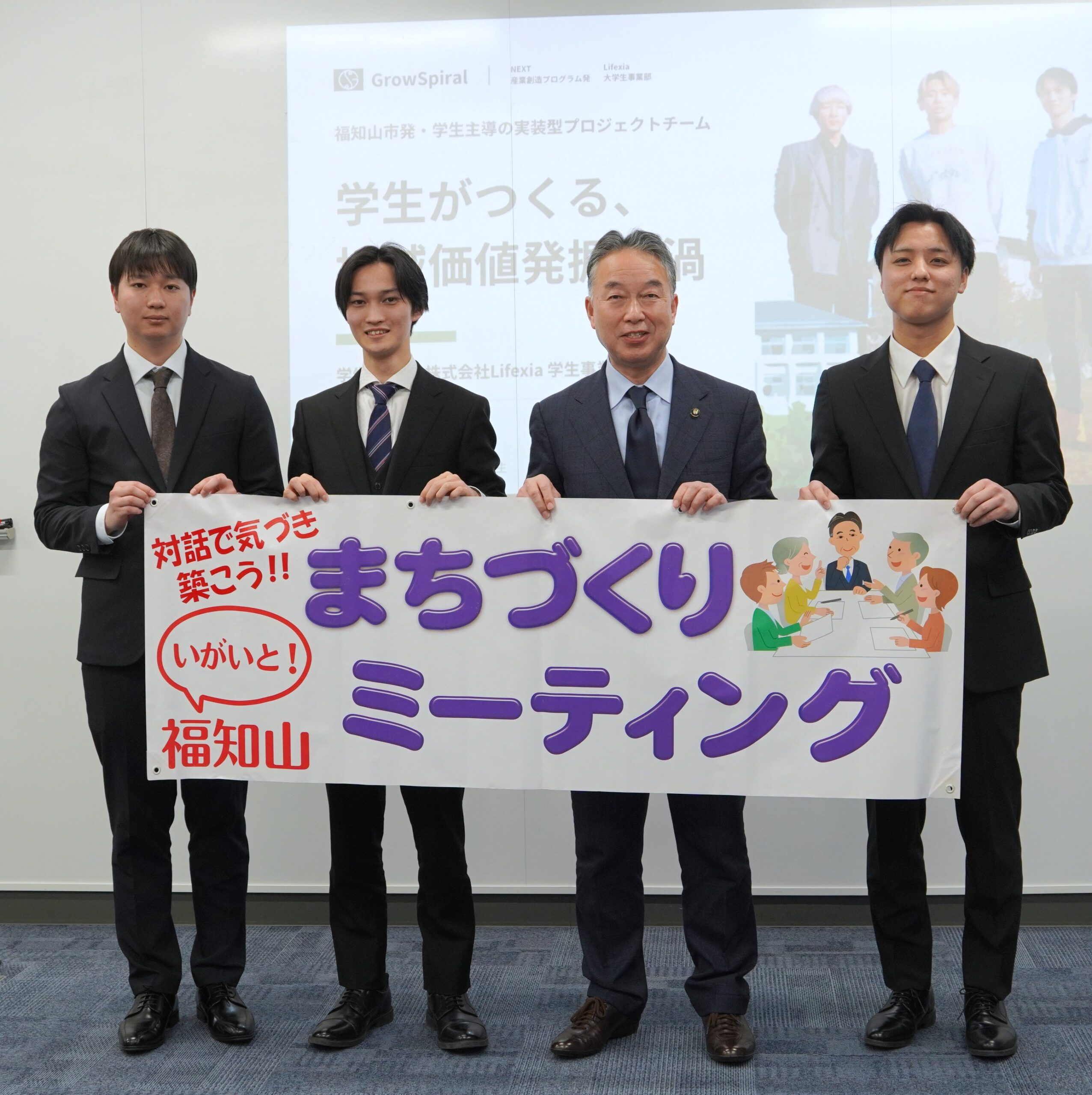 2026年2月18日(水)、市長との意見交換会「まちづくりミーティング」に本学学生団体「GrowSpiral(グロウスパイラル)」が参加し、これまでの活動報告や今後の展開について意見を交わしました。