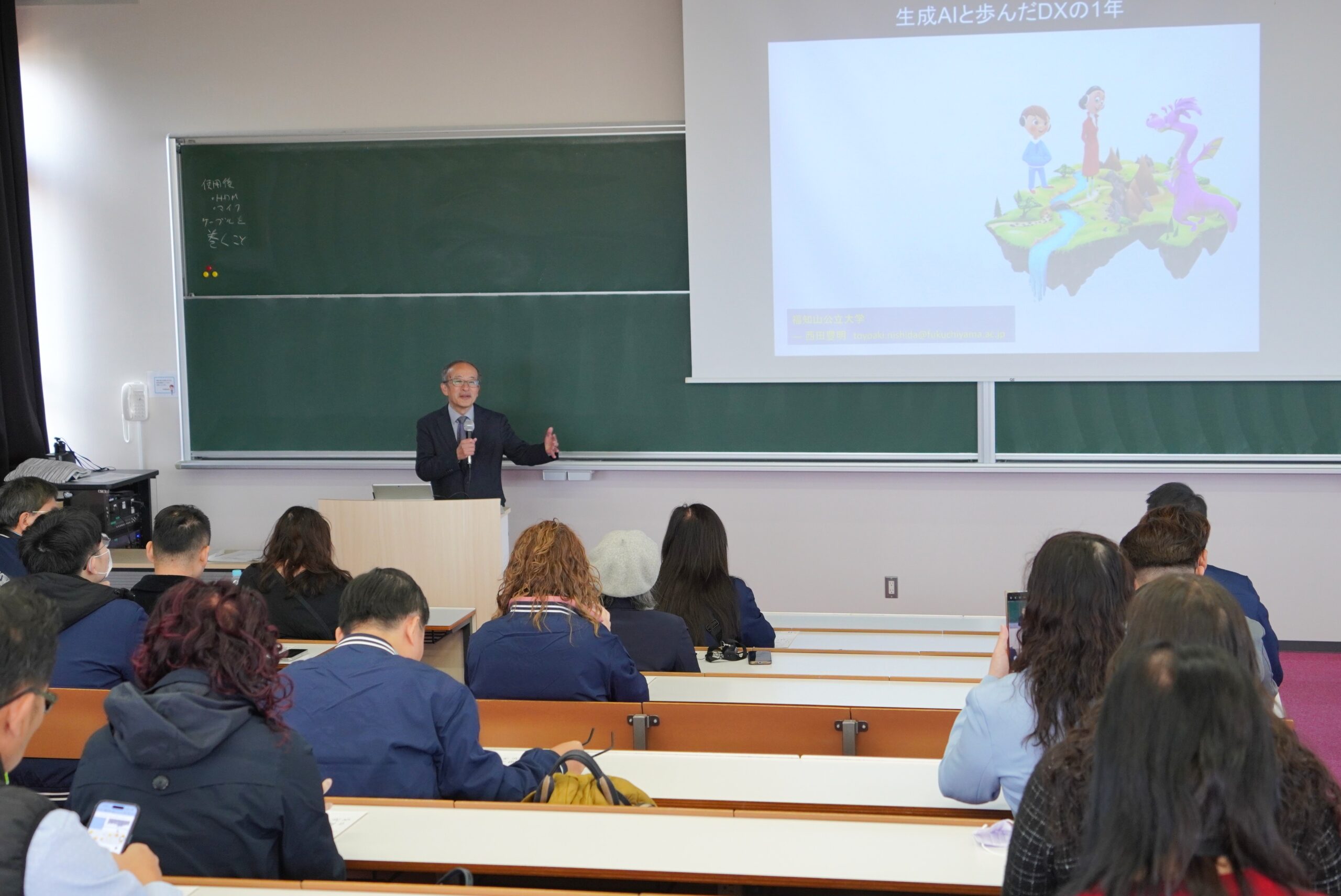 講演では、生成AIの急速な進展を踏まえつつ、本学におけるDX推進の取り組みや、教育・研究・組織運営における生成AI活用の可能性について、具体例を交えながら紹介されました。参加者からは活発な質疑もなされ、実りある講演会となりました。