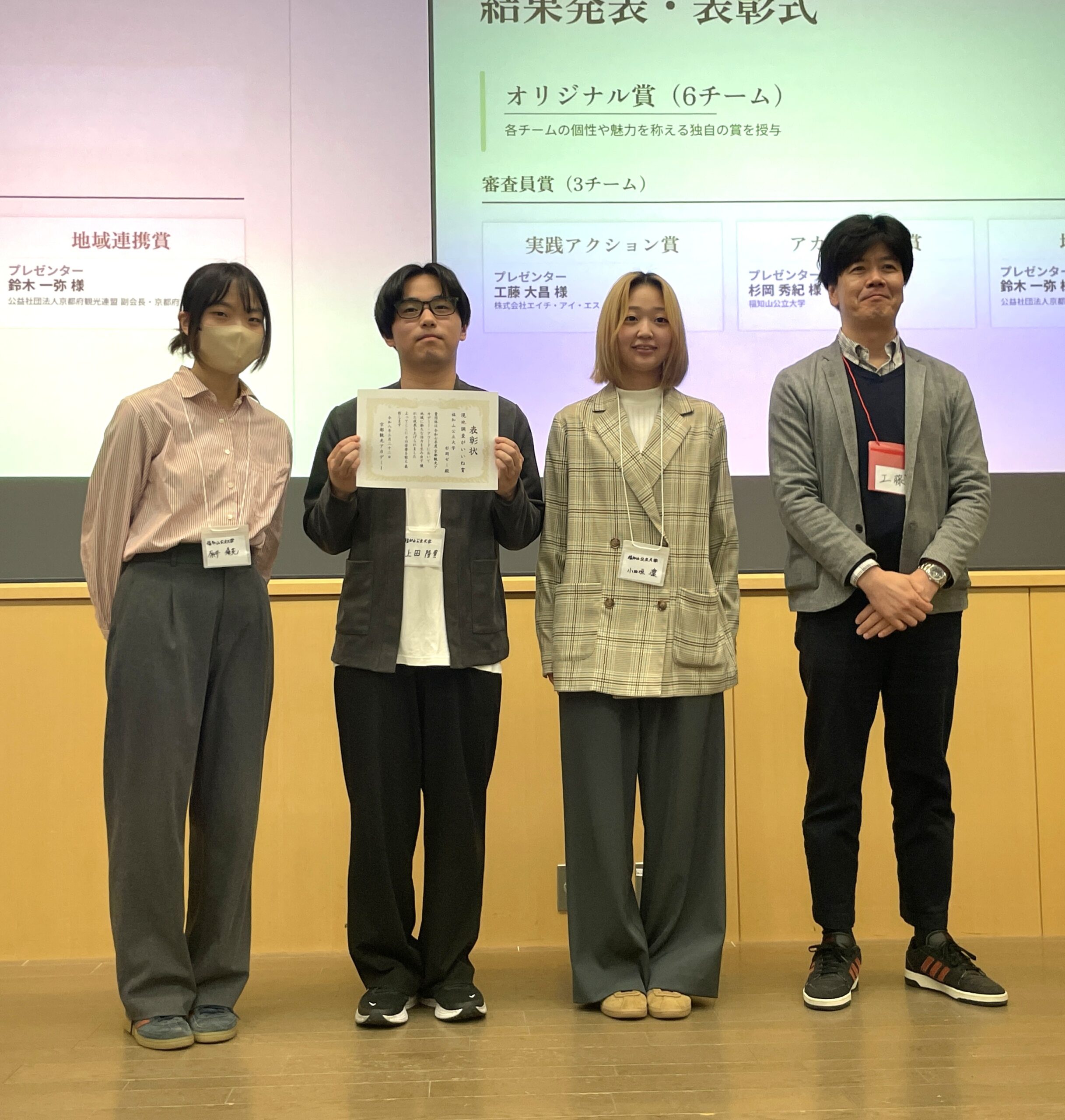 2026年3月22日(日)、キャンパスプラザ京都(京都市)で開催された「令和7年度 京都観光アカデミー・アワード」(主催:公益社団法人京都府観光連盟)にて地域経営学部杉岡ゼミの学生が参加し、オリジナル賞を受賞しました。