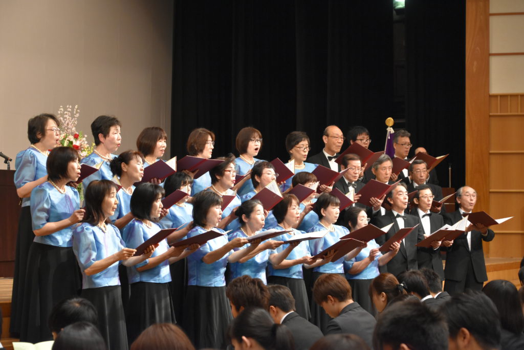 ご臨席を賜った大橋一夫福知山市長と大谷洋介福知山市議会議長、谷口伸之教育後援会会長からもご祝辞を頂戴しました。式典では福知山混声合唱団による学歌・応援歌が披露され、入学生の門出の日に花を添えてくださいました。