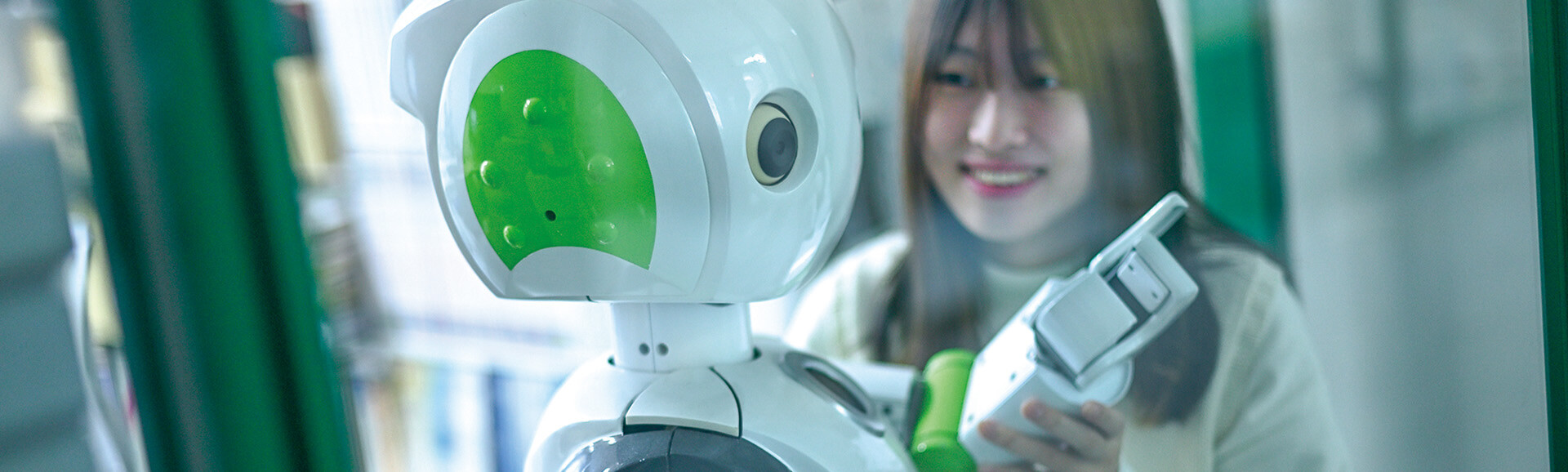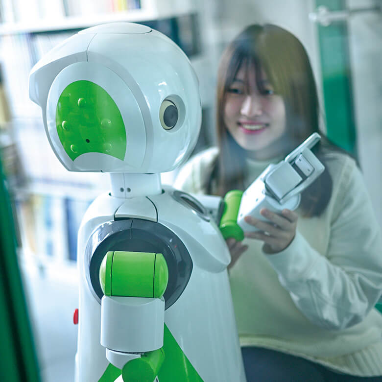 情報学部の研究室は全室ガラス張り。内外のコミュニケーションが多くなり、新しいアイデアが生まれます。
